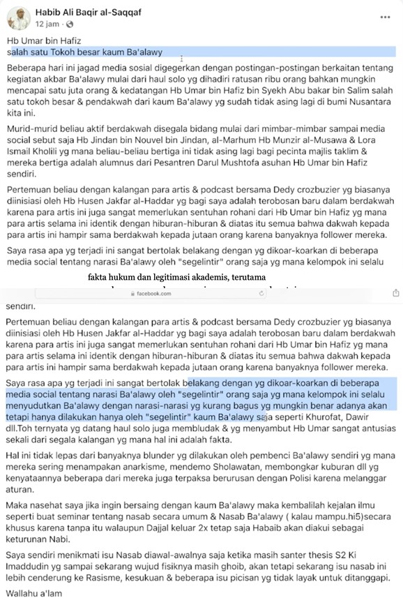 (HABS): … dikoar-koarkan di beberapa media social tentang narasi Ba’alawy oleh “segelintir” orang saja…